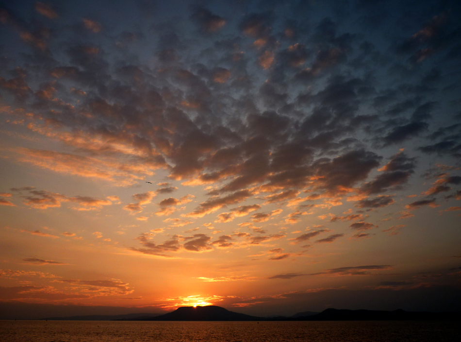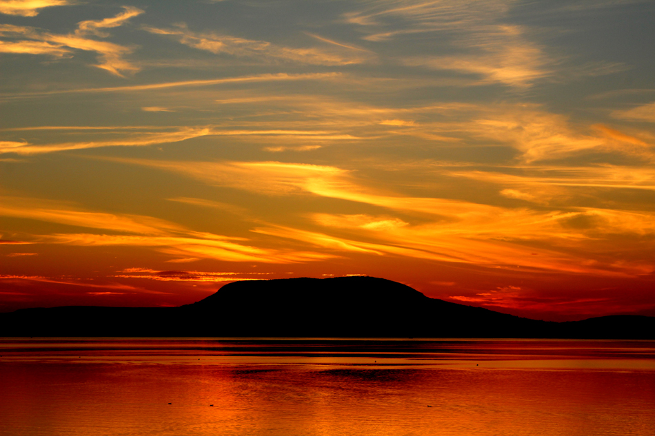 Global warming has brought significant changes into the climate of the surroundings of Balaton. Special micro-climate typical of lake shores has changed. As an impact of long dry periods without any precipitation and the extreme summer heat there were years like 2002, 2003 or 2013, when areas near the shore were totally dried up. The amount of 200-300 million cubic metres of water missing from the Balaton reduced the humidity of the air as well decreasing perspective effect, which causes optical illusion for the eye. That made it possible to observe atmospheric occurences in autumn and in winter which formerly had been hidden from the eyes by the foggy November or February sky. Colour flowers blooming in the autumn sky has totally changed the landscape of the lake. Refractions, which could have only been observed in summer so far, hand in hand with cold air and changed visibility have formed a new set of scenery for the usual background of Badacsony. Moreover the number of airplanes flying over the lake has increased significantly due to both the millitary activity of NATO and the frequency of civil lines. The increased traffic resulted in scenic increase of vapour trails as well generating further changes in the atmospheric phenomena of the lake and the vistas of the northern shore.