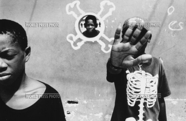 Figyeljünk vissza még egy pillanatra a Word Press Photo 1996-os díjazottjaira! Elsőként az adott évben a nagydíjat is elnyerő Francesco Zizzola beállított viccparádéját említeném! A luandai aknára lépett gyerekekről szóló anyagról csak a hülye nem veszi észre, hogy valamennyi képe beállított! Itt van például ez: