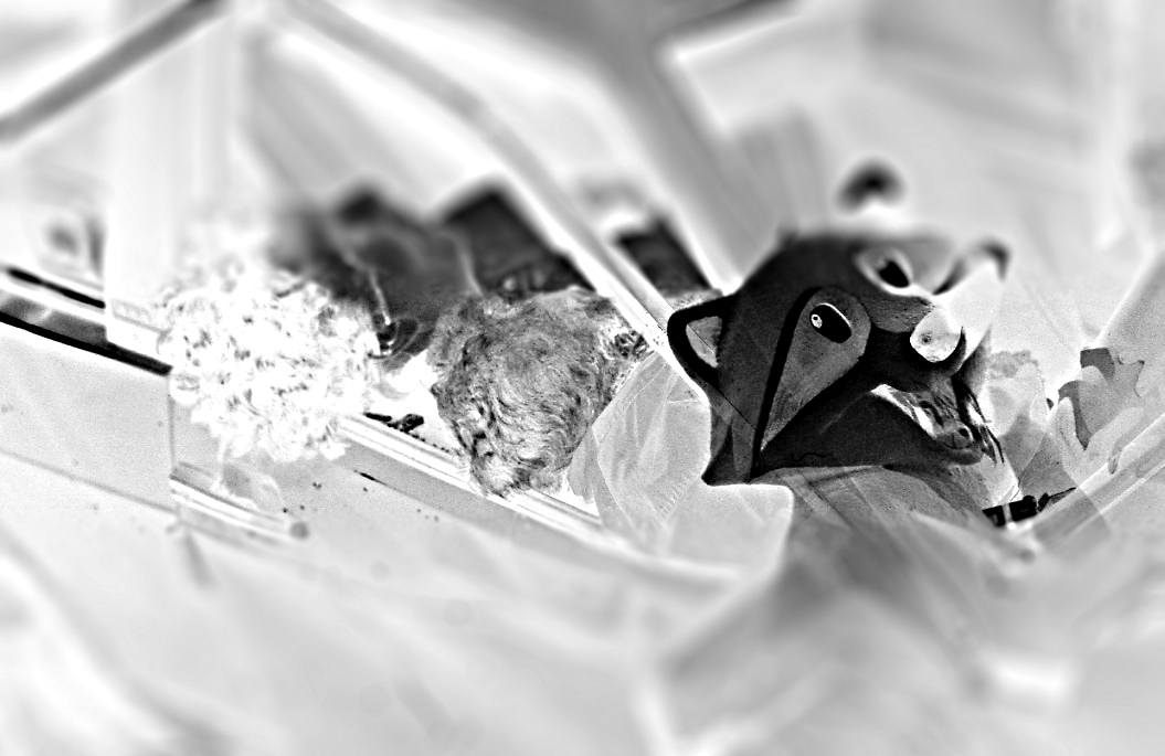 Előző nap délelőtt egy Walt Disney kiállításon voltam, és a tök sötétben a sínek között visszafűztem azt a filmet a gépbe, amire a kiállítást fotóztam… Magyarul ugyanarra a filmtekercsre fényképeztem rá mind a két témát. Természetesen mindkét anyag használhatatlan lett, és egyik sem jelenhetett meg. Ugye, hogy milyen jó, hogy letűnt a filmek korszaka? Egy képet azért lenagyított a laboráns, és hát, a pozitívba hajló változat így néz ki: