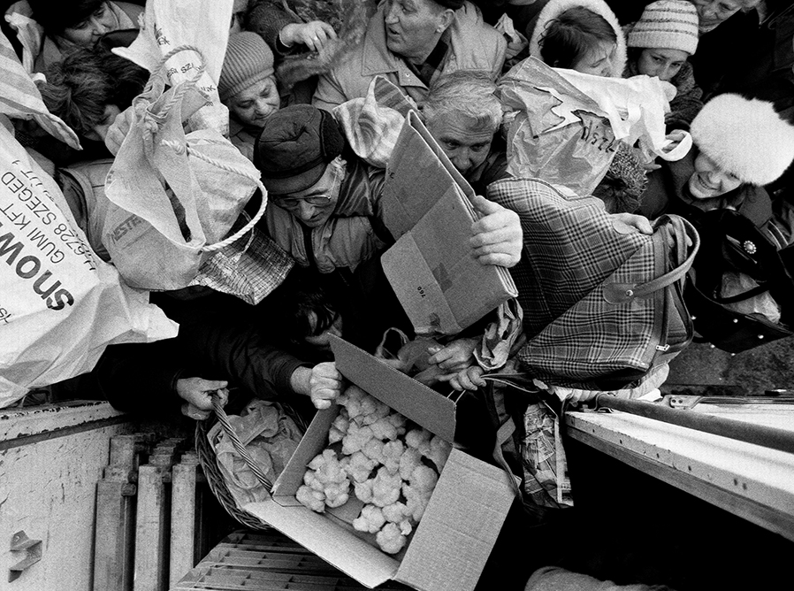 Most elmesélem nektek, hogy hogyan kell véletlenül megnyerni a Magyar Sajtófotó Pályázaton a Hír kategóriát. 1996-ot írtunk. A Kossuth térre hirdettek csirkeosztási akciót. Már nem emlékszem, hogy melyik cég és miért, de az kétségtelen, hogy igencsak nagy tömeg verődött össze. Ez már csak azért is volt így, mert sokaknak nem volt meg, hogy ezek itten naposcsibéket fognak osztogatni, nem konyhakész gyorsfagyasztott bontott csirkét tálcás kiszerelésben. A Barabást kiáltó tömegpszichózis azonban felülírta ezt a problémát, és úgy vetették magukat az emberek a naposcsibékre, mint egyszeri parlamenti képviselő a költségtérítésre. Hogy aztán mit csináltak a csibékkel a panelban, rosszabb esetben egy aluljáróban, az örök rejtély maradt, de az mindenesetre elgondolkodtató, hogy a szegénység húsz év alatt csak még nagyobb lett. Ma már nem is lehetne egy ilyen akciót megtartani, mert a tömeg felborítaná a teherautót. Az egész történet gyakorlatilag rendkívül profán volt, és ha valaki igazán hatásvadász képet akart csinálni, akkor csak fel kellett mászni a furgon tetejére…