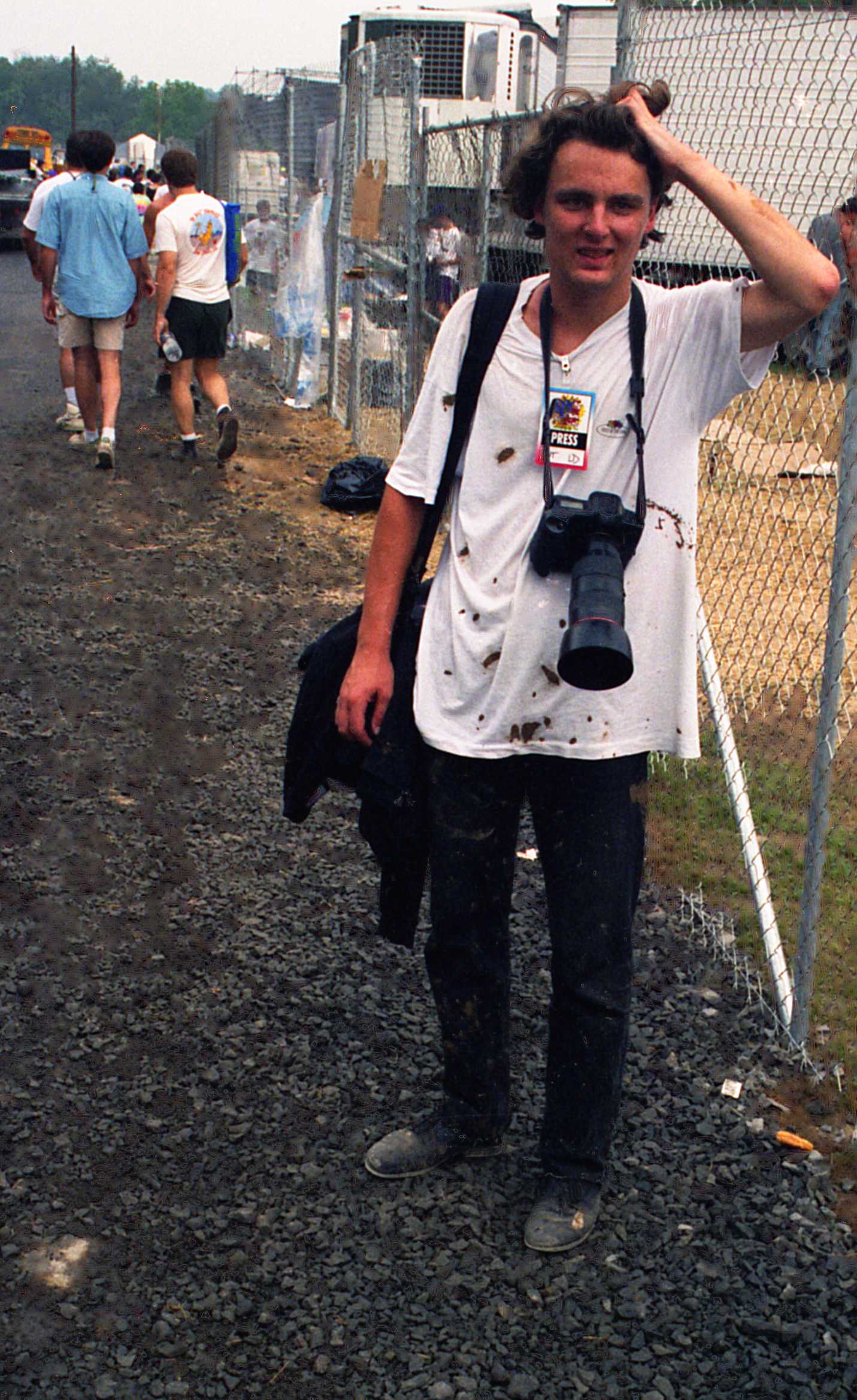 Bence elment Spin Doctors interjút csinálni én meg nyakig átázva a három napja rám rohadt egy szál ruhámban majszoltam a hamburgeremet (lehet, hogy hotdog volt, ezt a két dolgot ettünk három napig) amikor egyszer csak leült velem szemben Carlos Santana. Frankón! Először azt hittem, hogy valami poén, de rájöttem, hogy nem az, mert a tudósítói sátorban lévő összes riporter odarohant és ránk döntötték az asztalt. Santana teljes ledöbbenésem mellett annyit mondott, hogy ő csak a fotósoknak szeretné elmesélni, hogy ’69-ben ők is azzal szórakoztak a sárban, mint a srácok most a kettes színpad mellett, és akit érdekel, az nézze meg! Ez milyen már??? Odajön a világ egyik legjobb gitárosa, hogy felhívja a figyelmet, arra, amit szerinte érdemes lefényképezni! Ha már az embert Santana invitálja, ráfigyel a dologra. Kb. két tucat full saras hülyegyerek azzal szórakozott, hogy tiszta erőből nekifutva a sárban csúszva lendületből beleszállt a tömegbe, lerántva ezzel a szarba egy halom szerencsétlent. Hát, elképzeltem Carlost amint éppen’69-ben ezt csinálja… A poén fogadtatása nem volt töretlenül népszerű, és voltak, akik intenzív verekedésbe kezdtek a sárban, mondván, ha már úgy is mindene tiszta szar lett az embernek, legalább vegyen némi elégtételt.