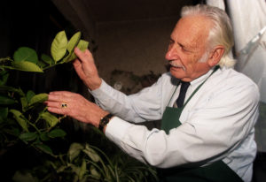 A munkaszolgálatról lejőve, éppen ott tartottuk, hogy miként célszerű a futómuskátlit átteleltetni, amikor is felkiáltott! „Egyébként van egy télikertem! Az nem lenne jó?” Hát, csak annyira, hogy nagyjából megoldást jelentett a problémára. Ok, nem barack vagy paradicsom, hanem fikusz vagy mittudomén, de azért több köze volt a kertészethez, mint a konyhabútornak. Akkor vettem észre, hogy már vagy két órája ott vagyok, és a fényképezőgépet még elő sem vettem. Szóval, télikertészkedtünk egy kicsit, és a végén – két telelő futómuskátli között – a gazda még pálinkával is megkínált. Aztán gyorsan hozzátette, hogy amúgy tök felesleges és macerás ez az egész muskátli teleltetés, és sokkal jobban járok, ha minden tavasszal újat veszek a virágosnál. Ezt meg is fogadtam. Viszont csak most tűnt fel hogy Bálint Gyuri bácsi, aki az idén ünnepelte a századik születésnapját, ezen a képen pont úgy néz ki, mint ma, pedig ekkor még csak alig volt nyolcvan.