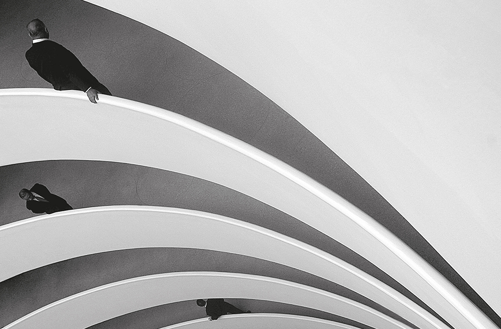 Ezt a felvételt alig három és fél óra alatt hoztam össze. Azóta kötődöm hozzá emocionálisan, de utálok belegondolni, hogyan készült. Leírni is szörnyű volt, nem hogy átélni. Ez egy ilyen szakma. Ezt azoknak mondom, akik a fotózásban csak a csillogást és a modell csajokat látják. Mindenesetre a kép végül megfelelt mind a három kritériumnak, és tényleg olyan, mintha a teremőrökön kívül senki sem lenne a világ egyik leglátogatottabb múzeumában. Bár még ekkor sem tudtam, hogy mi lesz a könyvborítón, de amikor idén nyáron ez a kérdés előkerült, végül ez a kép nyert. A könyv, melynek címe „Harmadik rész” közben egyébként elkészült, és bele is lehet lapozni. A dolog tanulsága, hogy ha legközelebb a Guggenheim Múzeum lesz a célpont, a fényképezőgépet garantáltan a hotelben hagyom.