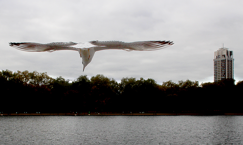 Azt hiszem minden lényeges dolgot leírtam a toronyról meg a lovakról, pláne, hogy manapság már társasházként funkcionál, úgyhogy most már csak azt kell tisztázni, hogy miért van a képen akkor egy sirály? Na, ez az, amit én is szeretnék tudni! A szememhez emeltem a fényképezőgépet, amikor is véletlenül megnyomtam a gombot. A sirály olyan hirtelen tűnt fel tőlem egy méterre a semmiből, hogy észre sem vettem, csak amikor ránéztem az LCD panelra, akkor kezdtem el gondolkodni, hogy honnan került oda ez a kép? Sirályokat nem szoktak nagylátószögű optikával, ilyen közelről fényképezni, pláne úgy, hogy a madár szárnyai teljesen párhuzamosak a horizonttal. Az egész olyan, mintha a sirály direkt nekem pózolna. Se addig, se azóta nem fordult velem elő ilyesmi. „Ez a tehetség!” – mondta mindenki, akinek ezt a sztorit elmeséltem. Csúnyán tévedtek. Ez a mázli! Hogy eredetileg hogy nézett volna ki a kép a toronyról? Szerintem fogalmam sincs.