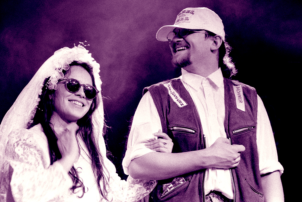 Ha meg már úgyis esküvő, akkor a szertartás után olyankor szoktak rendezni afterpartyt, ilyen násznépi vigasságot vagy mit. Lakodalom! Ez az! Rengeteg meghívott zenész meg persze a közönség. Az azóta kimúlt Almássy téri Szabadidőközpontot nézték ki erre a célra, aminél talán akadt volna jobb helyszín is, de végülis mindegy, ez ma már történelem. Szóval, volt helyszín, jó kis zenészek, meg két remek énekes és persze a közönség igen nagy számban. Jobban belegondolkodva, ez volt az egyetlen alkalom, hogy azért mentem az ifjú pár bármelyik tagjának koncertjére, mert kifejezetten őket akartam hallani. Márpedig itt ez történt, sőt! Egyrészt alig tudtam bejutni az épületbe, másrészt szerintem én voltam az utolsó ember, akit hajnalban kidobott a takarítóbrigád.
