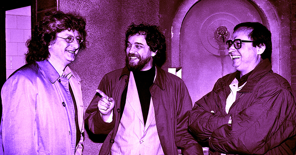 Hogy a képen látható urak mit keresnek együtt egy közös képen, azt csak nagyjából tudom. Hogy min vigyorognak ilyen intenzíven, azt egyáltalán nem. Hogy miért mentem oda, azt igen, de erről az egész történetről annyi réteget lehetne lehántani, hogy a végén simán kijönne belőle egy jól megtermett Bulgakov regény. Vagy kettő. Kezdjük azzal, hogy már a helyszín sem létezik. A Vígszínház egy hosszadalmas, hirtelen összedőlés elleni felújítás miatt 1993 tavaszán bezárt, és a színészek 1994 októberéig egy sátorban rágták a csepűt, amit a Nyugati pályaudvar mellett húztak fel. Hang- és állítólag hőszigetelt is volt, de ezt kapásból cáfolnám azzal, hogy az Esterházy-Ascher-Spiró hármas valamiért kabátban ácsorog a képen, és emlékeim szerint ez a jelenet már erősen a ruhatár tábla után zajlott.