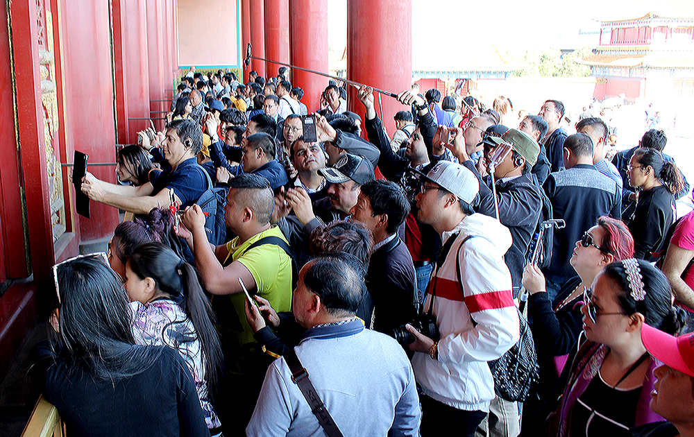Dehogy nekem fáj! A Föld sikít már lassan felfelé, hogy emberek, mi végre?! Mire jó ez az egész? Vegyük konkrétan ezt a képet! Ez a kép Pekingben készült, a tiltott városban. Azért készült el, hogy megmutassam ezt a társadalmi jelenséget azoknak, akik szerepelnek a képen. Vagyis nagyjából az egész emberiségnek. A Föld hét és fél milliárd lakójából mindenkinek van telefonja, tehát mindenki zsebében van egy fényképezőgép, az Antarktisztól Grönlandig, Ausztráliától Patagóniáig. Oké, a gyerekek egy részének még nincs, de nekik majd lesz. Ennek az embertömegnek egyre nagyobb része utazik. (Ez momentán megtorpant egy kissé, de vélhetően nem marad így mindig, sőt!) Namármost valamilyen belső késztetésből az utazó emberek azt gondolják, hogy mindent le kell fényképezniük, ami szembe jön. A minden alatt értsd azt, hogy MINDENT! Aztán ezt a képet jobb esetben el kell küldeni valakinek, akit egyáltalán nem érdekli az egész, mert őt csak a saját készítésű képe érdekli, amit ő küld el annak, akit viszont ez nem fog érdekelni. Rosszabb esetben a képet soha a büdös életbe nem látja senki! Az sem, aki csinálta, meg az sem, akinek a készítés pillanatában szánták. (Mindig szánják valakinek, ez nagyon fontos a pszichés háttér miatt.) Aztán a soha senki által meg nem nézett képet idővel kitörlik a pébe, hogy legyen hely annak a tök feleslegesen készülő képnek, amit majd a jövő héten törölnek ki.