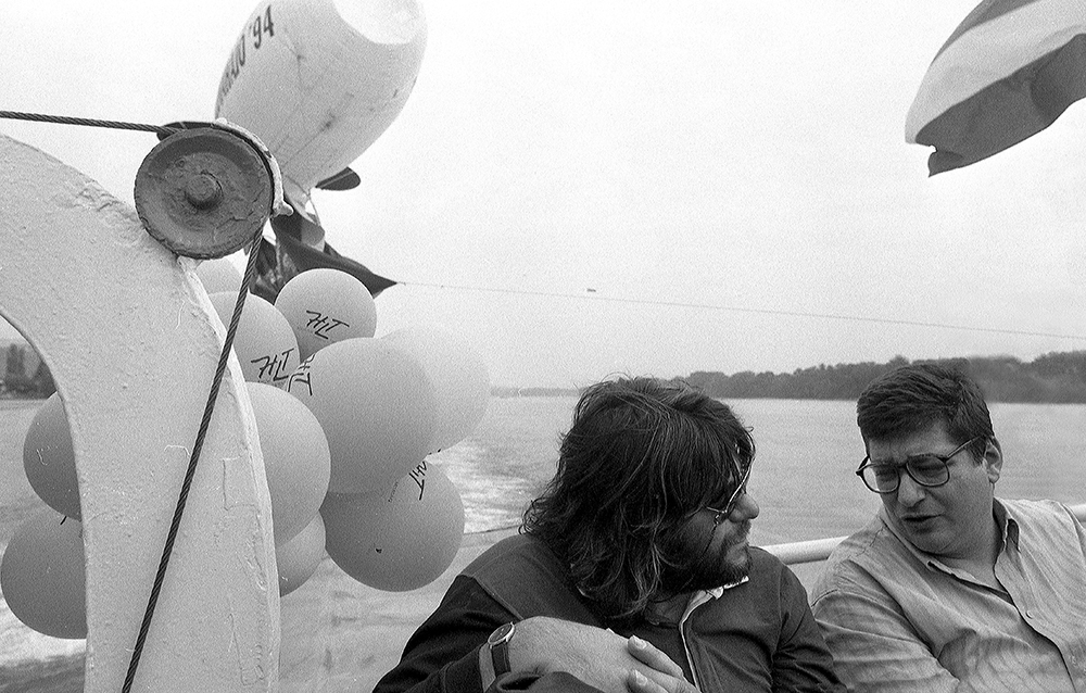 A képen látható két urat nem a Médiahajón ismertem meg. Olyannyira nem, hogy amikor megnyomtam az exponáló gombot, még egyikkel sem voltam személyes kapcsolatban, bár mindkettőjükről tudtam, hogy kicsoda és mindkettőjükkel beszéltem már máshol korábban. Azt sem tudtam, hogy ők ketten már régóta nagyon jól ismerik egymást, és Hobo meg Hepe a későbbiekben meg fog jelenni az én életemben is. Ez a nexus annyira erős lett, hogy Hobo az anyám temetésén József Attila verseket szavalt, Hetesi Péter Pál újságíró, dalszövegíró pedig több könyvem szövegét alkotta meg, miközben igencsak jó barátok lettünk. Írt közben dalszövegeket a Tátrai Bandnek meg a Bikininek, sőt még megasztáros brigadérosoknak is. Ők amúgy sokat balhéztak is egymással, aztán mindig megnyugodott a dolog, és amikor Hetesi Úr 2012-ben meghalt, Hobo tőlem tudta meg ezt az egyébként mindannyiunkat letaglózó hírt. Hepe sajnos beteg volt, amivel nem lehetett semmit kezdeni, de nekem mindig azok felejthetetlen pillanatok jutnak eszembe róla, amikor szabadon szárnyalt a hülyeség és a teljes őrület, Hobo meg közben a Lágymányosi művházban tolta a muzsikát egy olyan klubban, ami sajnos már sosem lesz Magyarországon.