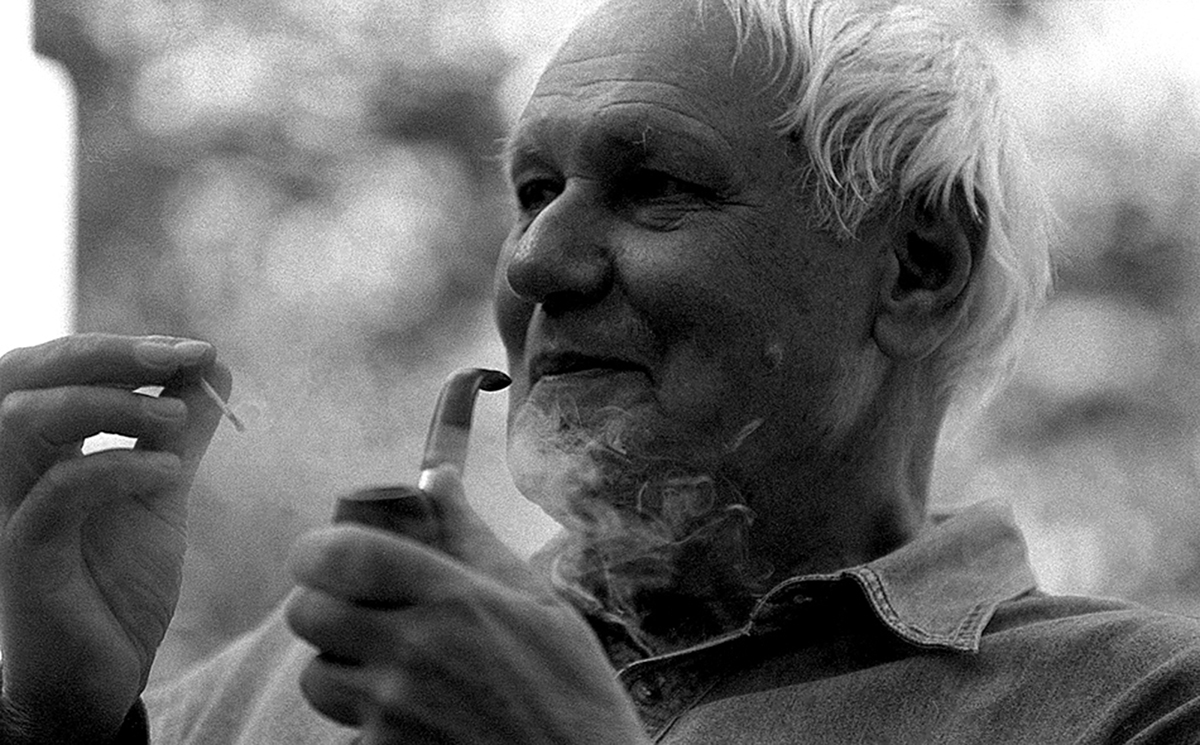 Ez a kép az első alkalomkor készült, valamikor délelőtt. 1996-ot írtunk. A Főváros akkori kulturális vezetése gondolt egy hirtelent és befogadó teátrummá alakította át a Thália színházat. Akkor sem értettem, hogy ez kinek volt jó, meg most sem, de az biztos, hogy a Thália akkori társulatát egy huszárvágással kirakták a színházukból. Egy laza mozdulattal kipakolták a Tháliából a többek között Bánsági Ildikó, Bubik István, Eperjes Károly, Gáspár Sándor alkotta, Csiszár Imre által vezetett társulatot. Na, ők tartottak tiltakozással egybekötött sajtótájékoztatót egy budai étterem kertjében, ahol szolidaritásból Jancsó Miklós is megjelent. Az égvilágon nem csinált semmit, nem beszélt senkivel, csak rágyújtott a pipájára és a sajtómunkásokkal együtt végighallgatta a szomorú színészeket. De valahogy mégis csak növelte jelenlétével az esemény súlyát. Nem tudom megmagyarázni, hogy miért, és talán nem is kell. Lehet az is, hogy csak miattam jött el, hogy megcsinálhassam róla ezt a fényképet.