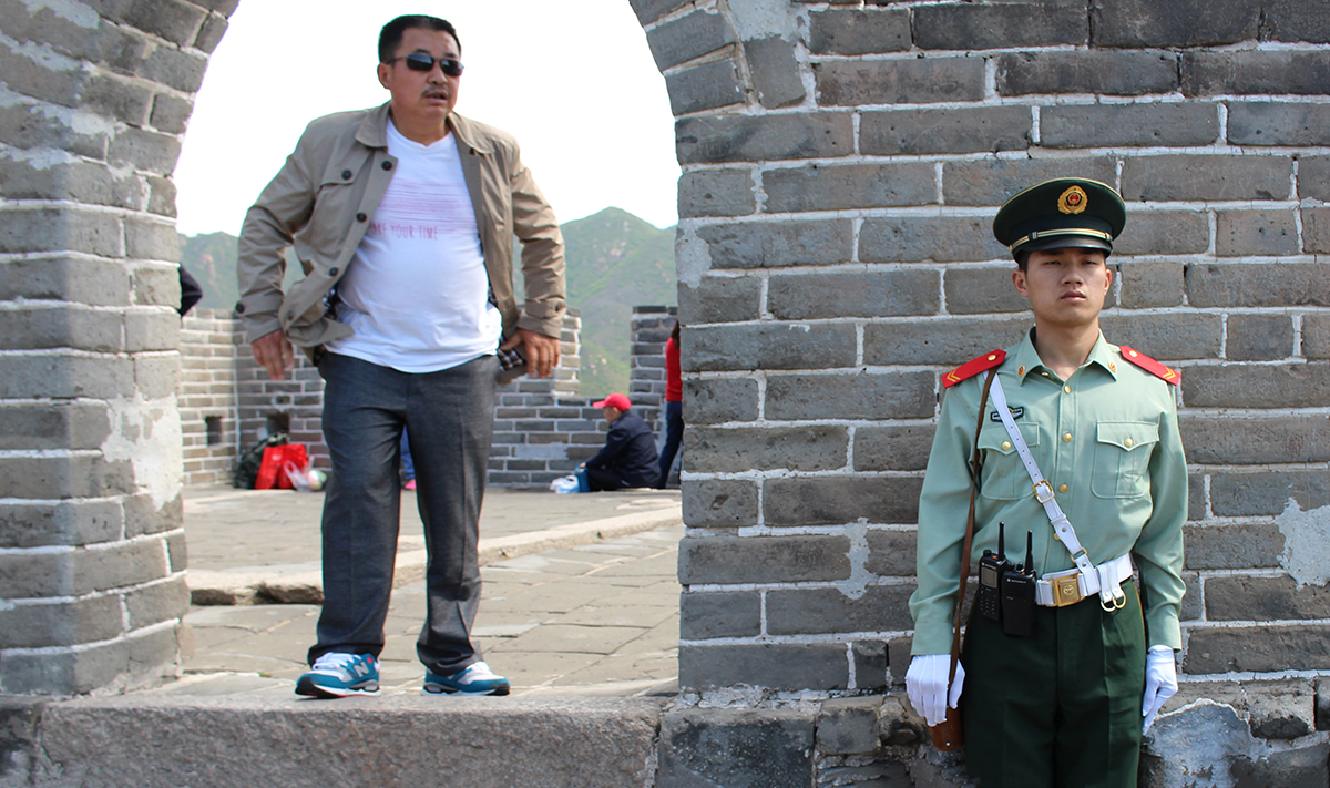 A turisták egyébként kínaiak, másféle nációt csak elvétve látni. Én csak ott döbbentem rá, hogy Kínában szinte csak belföldi turizmus van, csak ez nem tűnik fel, legalább is ránézésre nem. Az ember azt gondolja, hogy a hétvégére kiugrottak a városból falnézőbe, de nem. Ezek az emberek ezer kilométerekről érkeznek ide. Az egészet az generálja, hogy minden kínai nagy vágya, bárhol éljen is az országban, hogy életében egyszer eljusson a pekingi Tienanmen térre és aztán megvizitálja a nagy falat.
