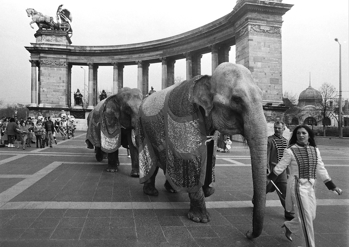 Azért elég szürreális volt nézni a budapesti Dózsa György úton, a japán turisták gyűrűjében, a dudáló autók között vonuló elefántokat. Eltelt vagy fél óra, amíg sikerült az ormányosokat leterelni az útról, és helyreállt a rend, de mivel a japánok azt hitték, hogy ez itt olyan, mint az őrségváltás a Buckingham palota előtt, ezért teljesen természetesnek, mondhatni hétköznapinak vették az egészet. Tulajdonképpen valahol megsajnáltam őket, mert úgy éreztem, hogy bár akaratlanul, de teljesen hülyét csináltak belőlük. Náluk csak az elefántokat sajnáltam jobban, akik meg semmit nem értettek az egészből, csak az autók dudáit meg a cirkuszi viszonylattól erősen eltérő környezetet érzékelték, ami szemmel látható zavarodottságot okozott bennük.