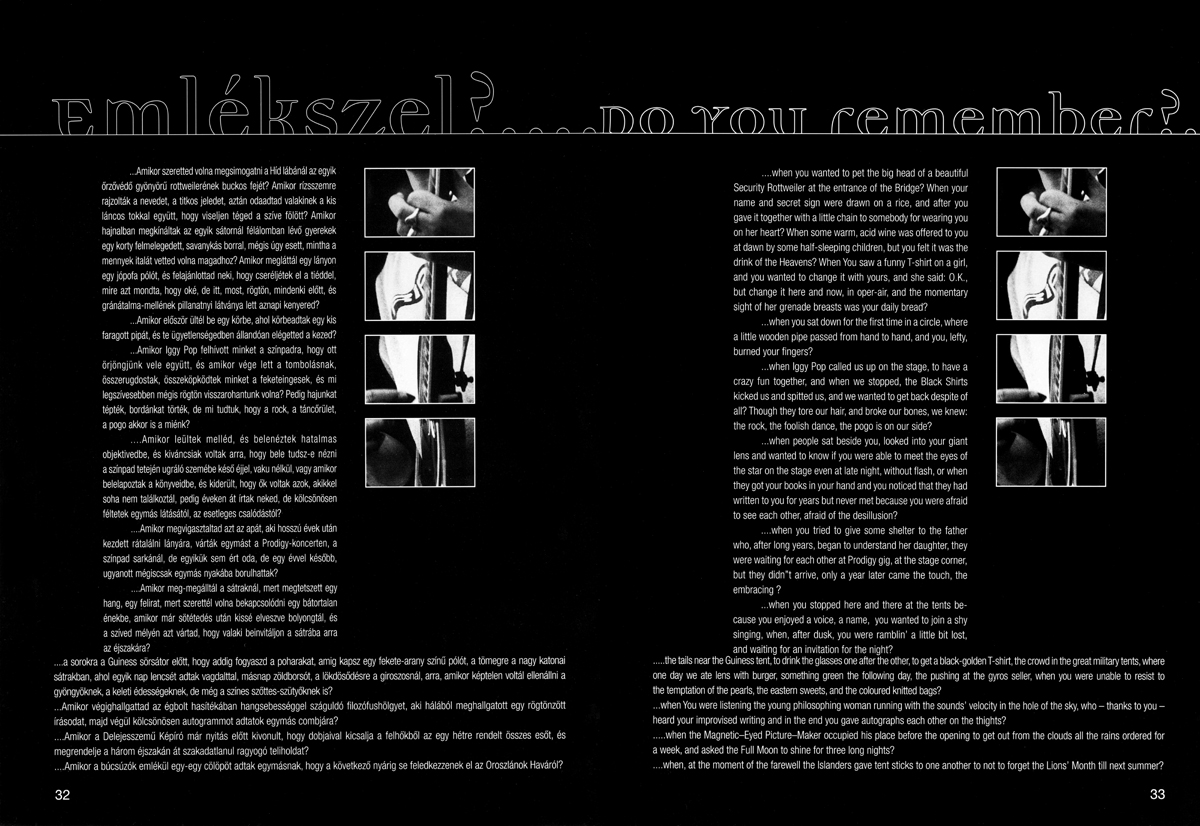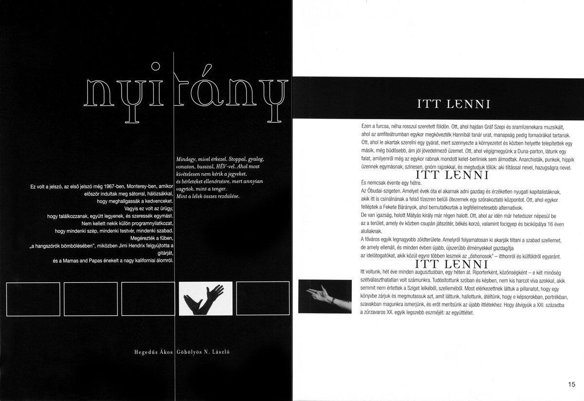Aki ma ismeri meg, hitetlenkedve hallgatja a „régi” Szigetről szóló történeteket. Aki ott volt, sóhajtozva gondol vissza azokra az évekre. Hegedűs Ákos/morpho első fotóalbuma a Sziget fesztivál kezdeti éveinek történeteit örökíti meg az apró egyéni emlékektől a nagyszínpad előtt hömpölygő tömegekig. Ez a fekete-fehér fotóalbum az első könyv volt, amelyet a Sziget fesztiválról készítettek – annak kezdeti tétova lépéseitől egészen a megafesztivál kialakulásáig tartó első időszakát dolgozza fel. Mivel a két szerző ekkortájt napilapoknak tudósított, a fesztivál minden egyes napját a helyszínen töltötte. Szinte együtt éltek a szervezők, a fellépők és a közönség minden egyes pillanatával. Ezekből a pillanatokból állt össze a könyv gerince. Korábban ilyen jellegű fényképalbumot nemigen adtak ki Magyarországon, amelyben a fesztivál – mind a közönség, mind a fellépők részéről – a maga naturális részleteiben jelenik meg. Még soha nem fordult meg ennyi sztár ilyen rövid időn belül Magyarországon, mint ezekben az években, így GNL szinte habzsolta az interjúalanyokat. Beszélgetőpartnere volt többek között Slash, David Bowie, John Cale, Paul Kantner, Peter Hammill, Patti Smith és Coolio. A Sziget fesztivál első évei a két szerző számára sokkal izgalmasabbak és érdekesebbek voltak, mint a jelenlegi multikulti megafeszt.